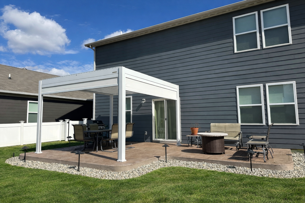 Louvered pergolas provide adjustable shade and airflow. You can open or close the louvers to control sunlight and comfort, making the space more usable throughout the day and across different seasons.